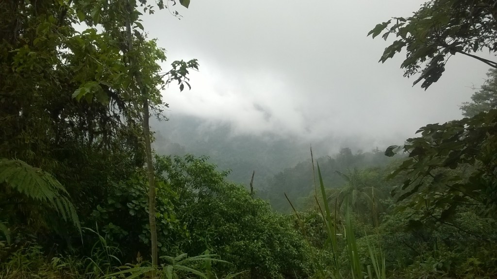 Hace una semana, cuando estuve caminando por la vía de bicicletas al amanecer, gozando del esplendor de la mañana y de la vida en general, me llegó de la nada la frase “bañada en Tu gracia.” Entonces pensé “Espera, escribí un poema con ese título cuando viví en Mindo (Ecuador).” Cuando llegué a casa, busqué en mi computadora, y claro que sí, ¡allí estaba! Lo escribí en el 2014, más o menos un mes después de haberle dicho a mi esposo que iba a separarme de él e iba a dejar el negocio que teníamos. La foto de las nubes abrazando las montañas fue tomada en el bosque nublado de Mindo. Sí, fui bañada en la gracia del Señor el día que escribí el poema, y también la semana pasada mientras caminaba.