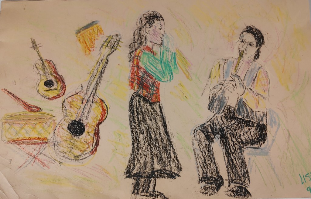 The drawing was done in 1999 by a teacher, Ms. List, during one of our school performances.