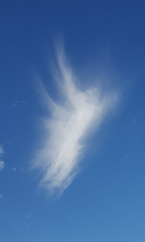 Este poema fue escrito en el 2021, cuando estuve en transición entre ser enfermera y ser capellana de cuidados paliativos. Poco a poco, estuve creciendo en mi rol de capellana y dándome cuenta de que ahí está mi corazón. En el proceso, agudizó mi sensibilidad de lo Sagrado en todo mi alrededor y dentro de mí. Ya que no tengo una foto de halcones (ni ningún tipo de ave) en vuelo, decidí utilizar esta de una nube que definitivamente está llena de la Presencia Divina.